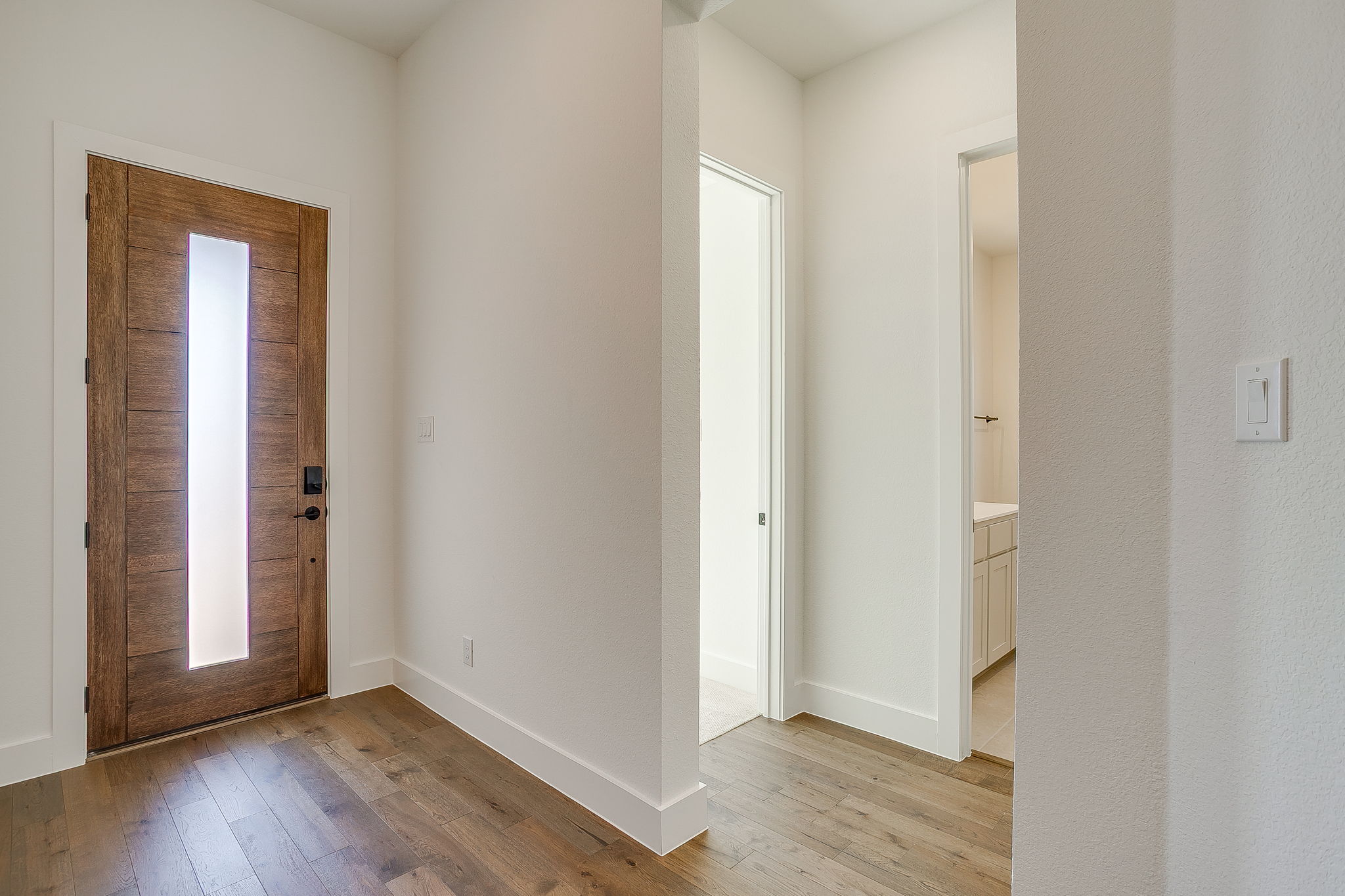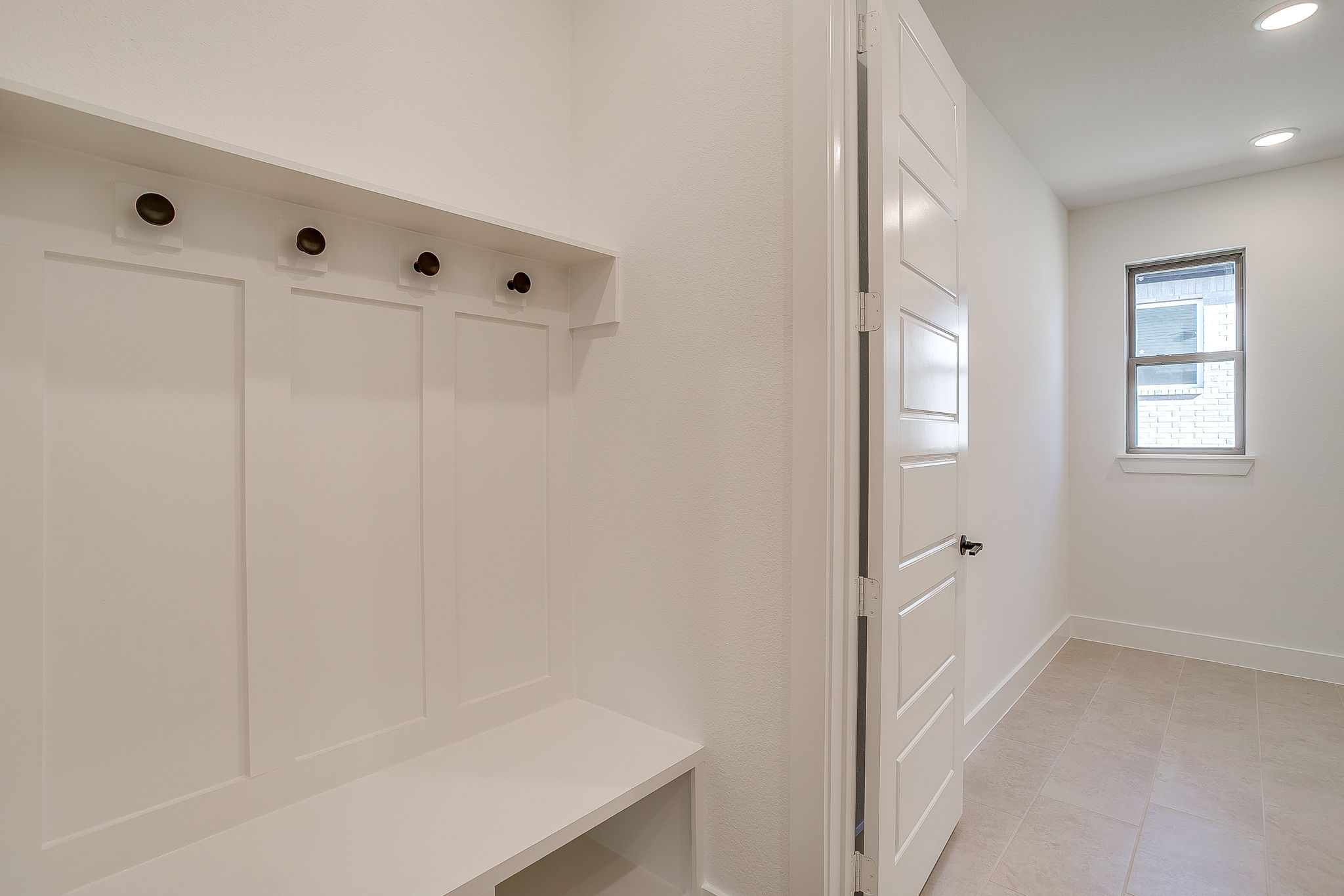 - Finished mud room with drop zone and black hooks