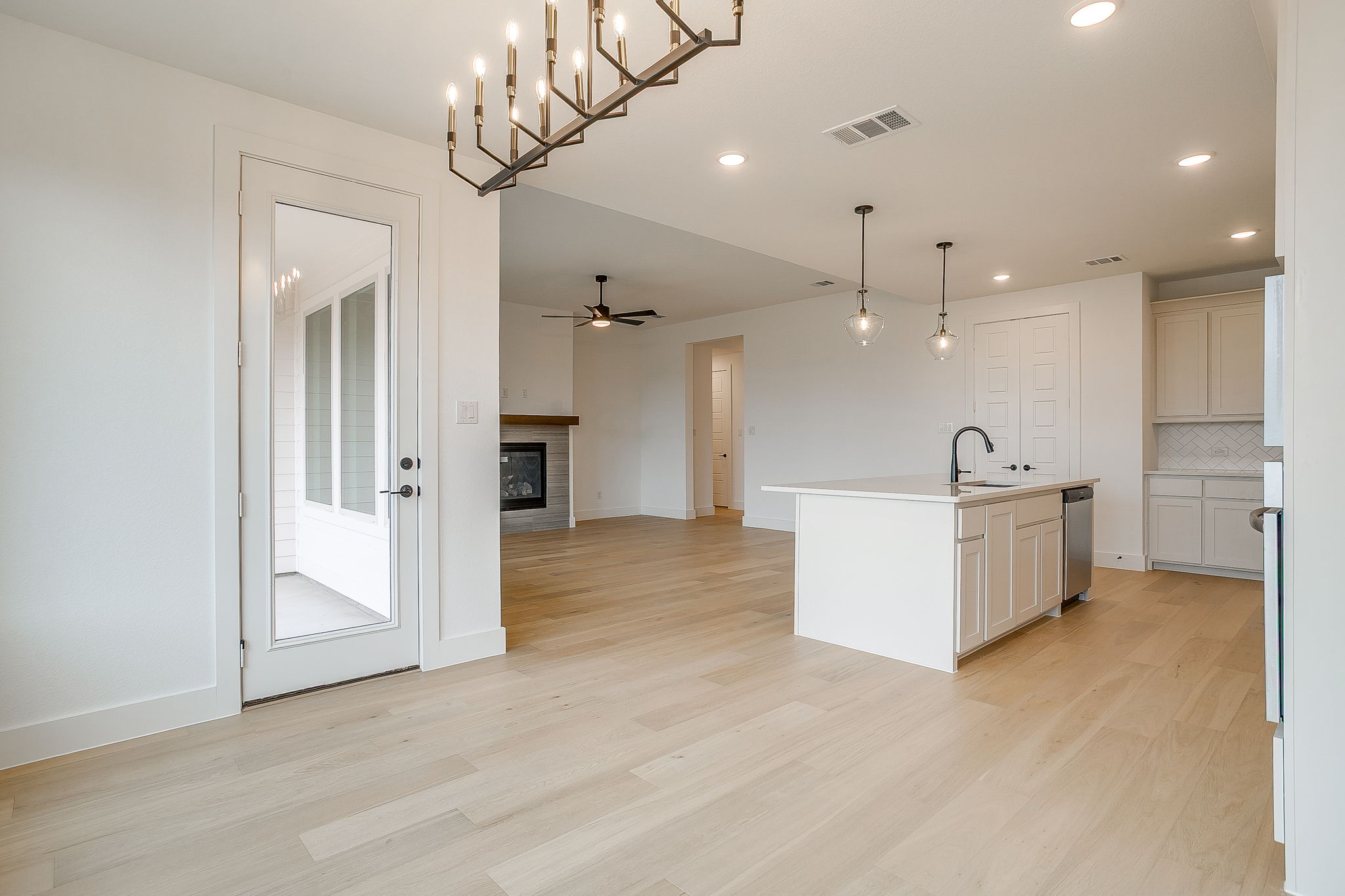 - Upgraded pendant lighting above kitchen island