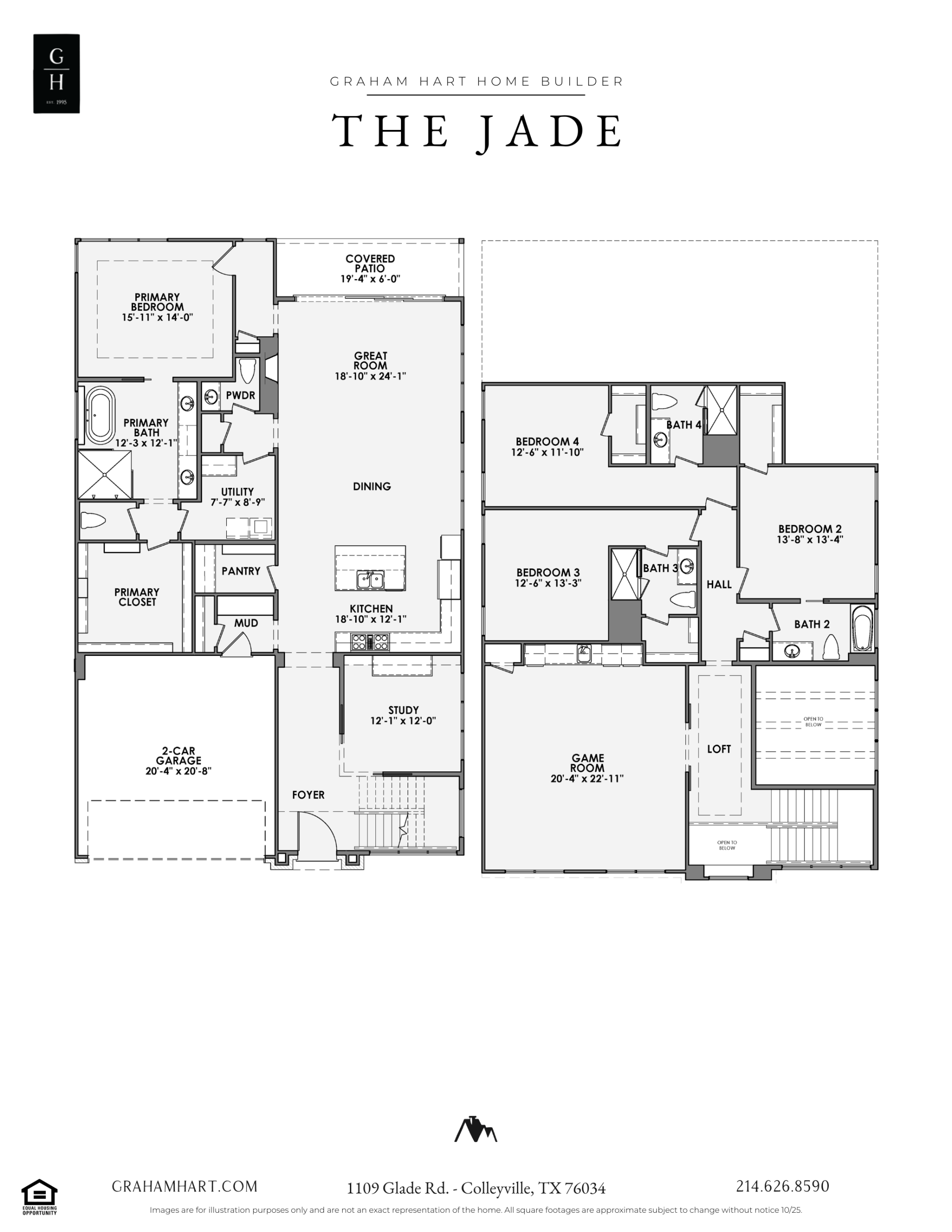 The Jade is a 3,624 sq. ft. home of modern elegance with thoughtful design and indulgent details. With 4 bedrooms and 4.5 bathrooms, this floorplan offers both sophistication and comfort. The primary bathroom is a retreat, where you can unwind in style with a soaking tub, walk-in shower, and refined finishes that feel like a private sanctuary. Upstairs, the spacious game room offers the perfect setting for entertaining—whether hosting lively gatherings or enjoying a quiet evening of leisure. With its seamless flow of living spaces, and refined touches throughout, the Jade is designed for those who seek a balance of luxury and livability.